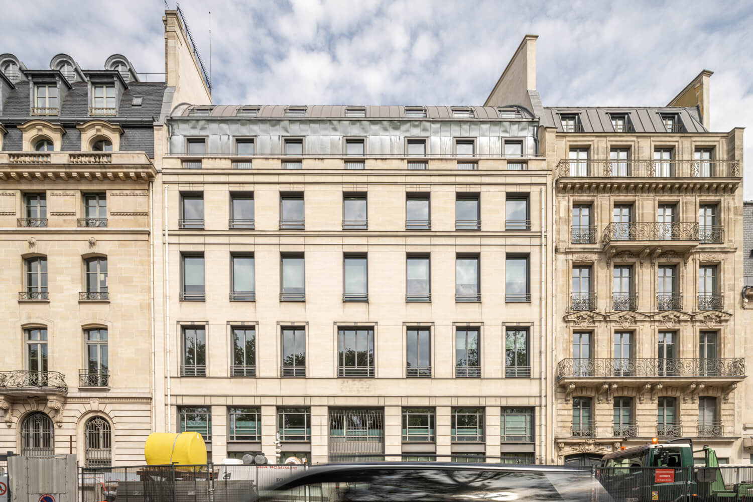 Dieser Gebäudekomplex befindet sich mitten im Zentrum von Paris am geschichts- und prestigeträchtigen Boulevard Haussmann. Er umfasst zudem die angrenzenden Straßen Rue d’Anjou und Rue Pasquier.