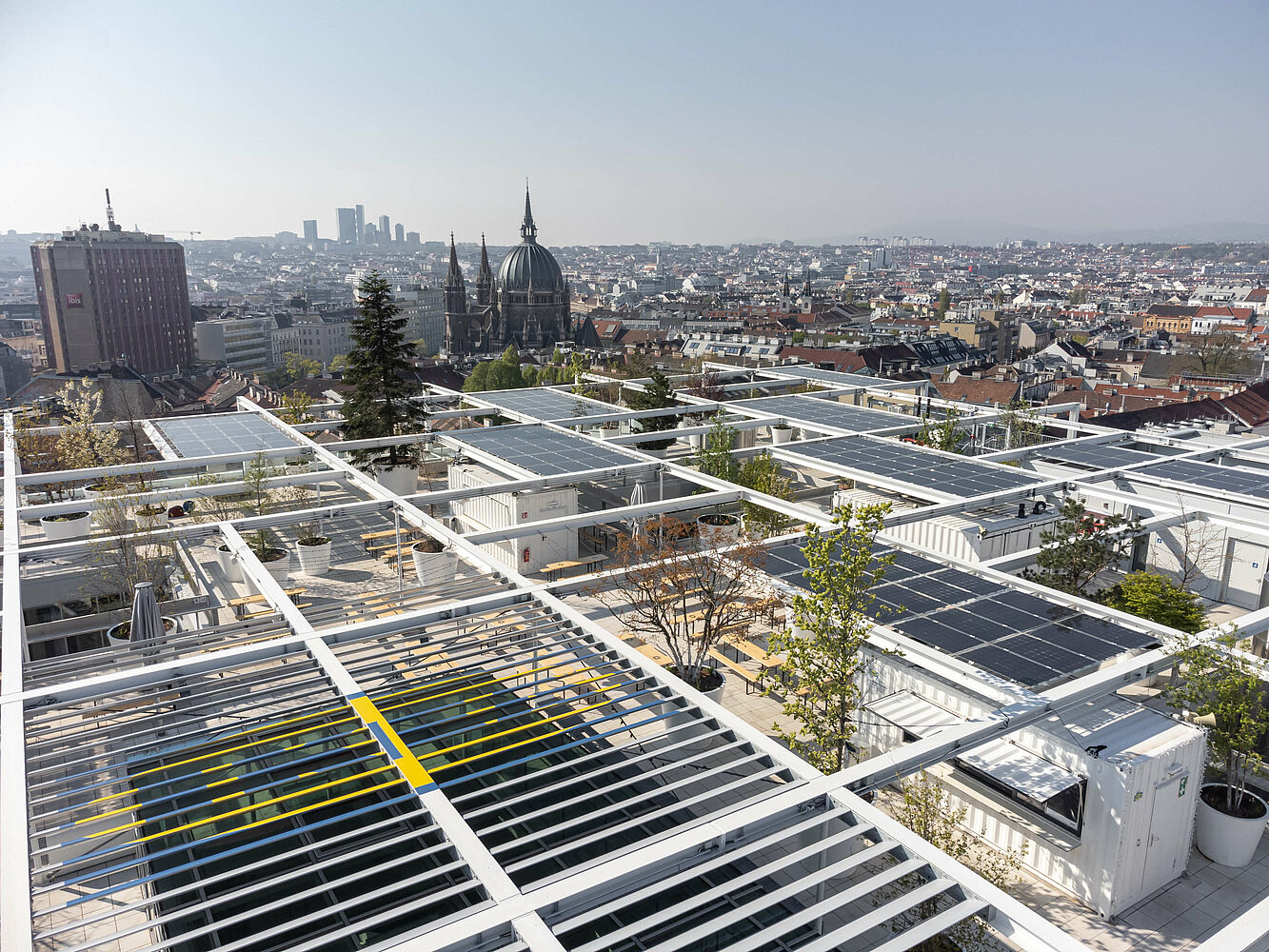 Mit seinen begrünten Fassaden, der Mischnutzung und vor allem der aktivierten Dachfläche ist IKEA Wien Westbahnhof viel mehr als nur ein Einrichtungshaus, sondern ein neuer Treffpunkt im Herzen der österreichischen Hauptstadt. Neben den Fassaden ist das Dach die Besonderheit des Gebäudes. Die riesige Dachterrasse bietet nicht nur einen herrlichen Blick über Wien, sondern auch vielseitige öffentliche Angebote und eine Herausforderung an den Schallschutz. Planer und Bauherr haben das Flächenpotenzial auf den Dächern der Städte erkannt. In ein paar Jahrzehnten, so Jakob Dunkl von Querkraft Architekten, werden unsere Dächer „Landschaften sein, die bewohnt, benutzt und begrünt sein werden“, also ein ganz großes Thema der Zukunft.