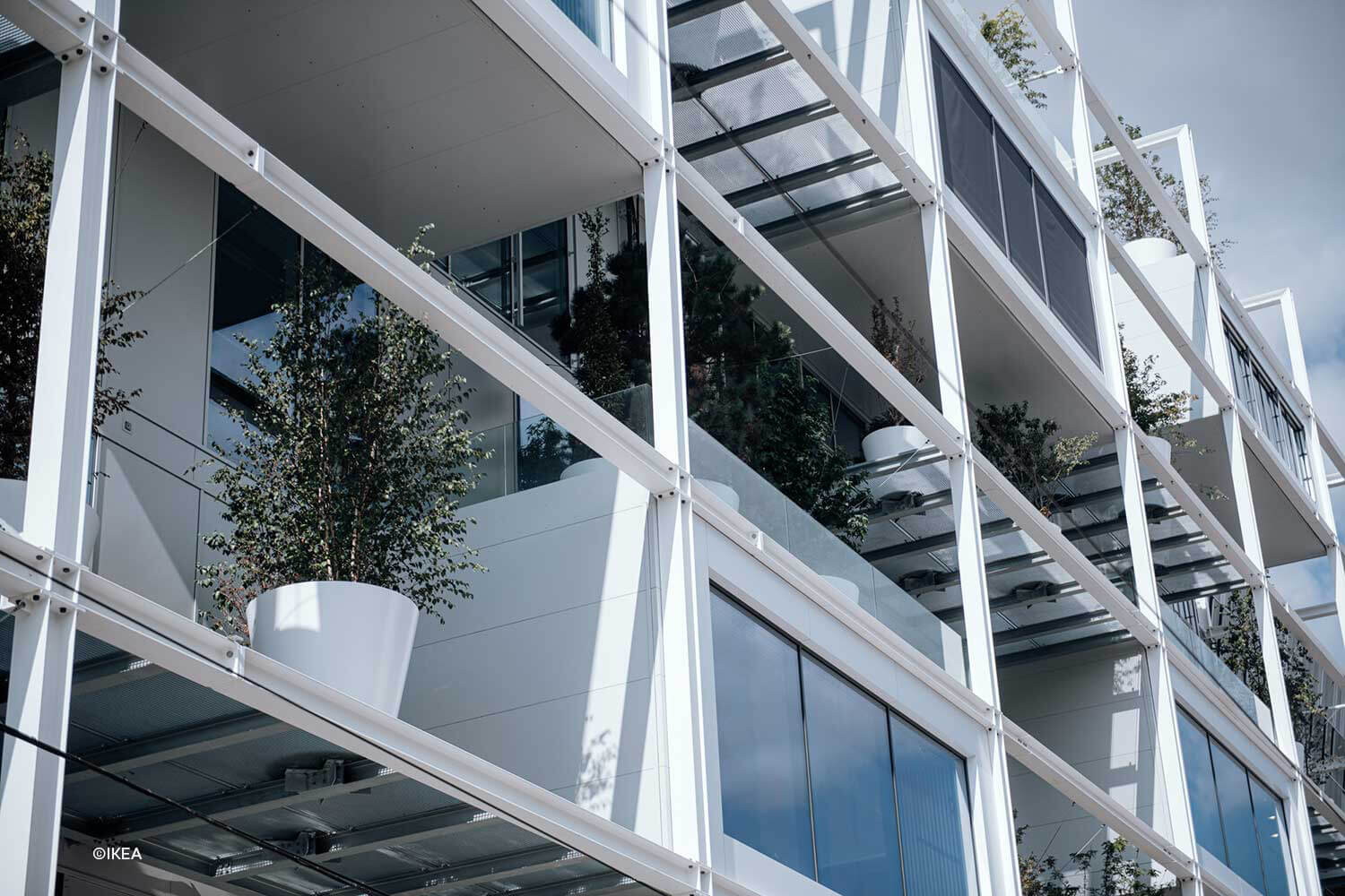 IKEA will ein guter Nachbar sein, und so wirkt das Gebäude auch ausgesprochen freundlich, unkonventionell und urban. Das schwedische Möbelhaus nutzt fünf der sieben Geschosse. In den beiden obersten Stockwerken ist das Hotel Jo & Joe untergebracht. Das Gebäude entspricht dem positiven Image des Einrichtungshauses, und dennoch ist diese Filiale anders als alle anderen zuvor. Auf jeder Ebene gibt es Freiflächen mit Pflanzen, begrünte Fassadenelemente, Vogelnester, Bienenstöcke und ganz viel Licht. Insgesamt 160 Bäume sorgen für ein angenehmeres Mikroklima. Gekrönt wird das Gebäude von einer attraktiven Dachfläche mit Angeboten, die den Unterschied machen. Dach und Gebäude wurden bereits mit dem GREENPASS® Platinum Zertifikat ausgezeichnet. Das ist ein ebenfalls ambitioniertes neues All-in-one Planungs- und Zertifizierungstool für klimaresiliente Stadtplanung und Architektur.