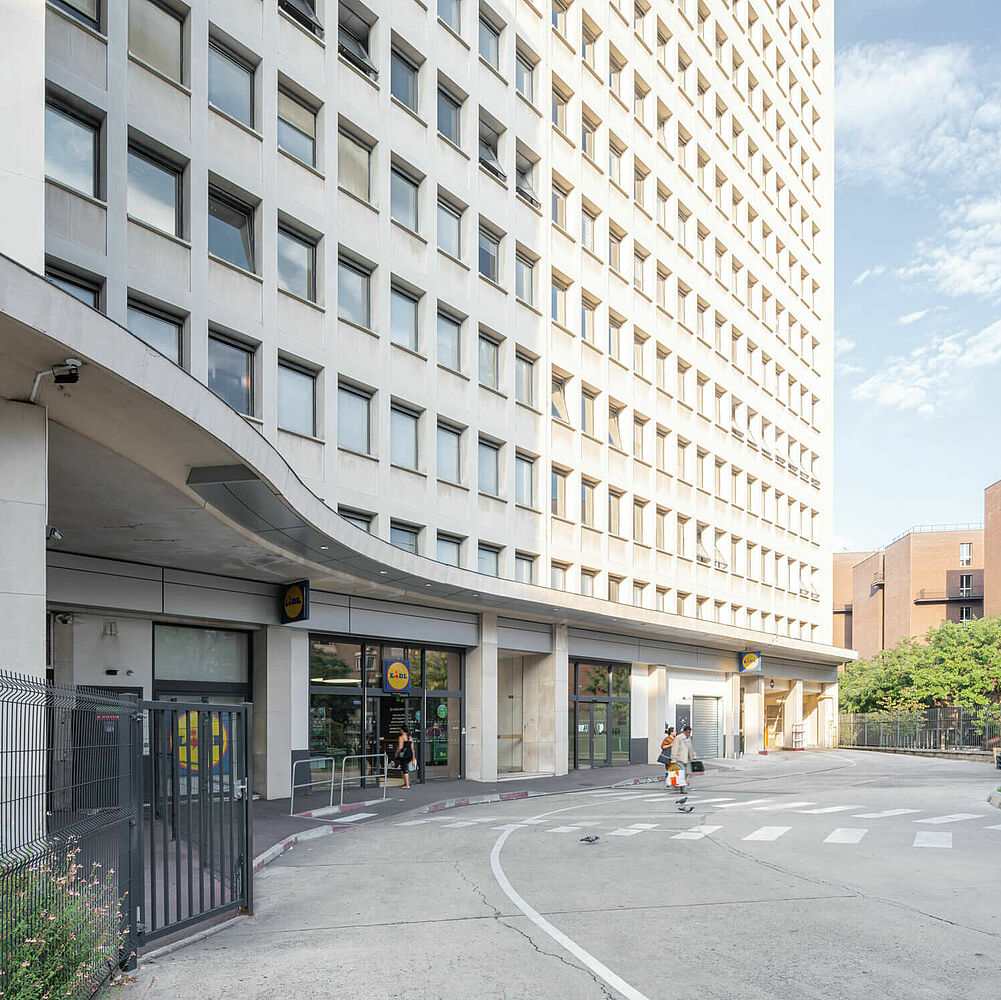 Im 13. Arrondissement von Paris war REGUPOL an einem solchen Projekt beteiligt. Hier wurde ins Erdgeschoss eines Wohnblocks ein LIDL-Markt integriert. Der Supermarkt wurde mit REGUPOL sound entkoppelt, wodurch eine Symbiose aus guter Nahversorgung und störungsfreiem Wohnen ermöglicht werden konnte.