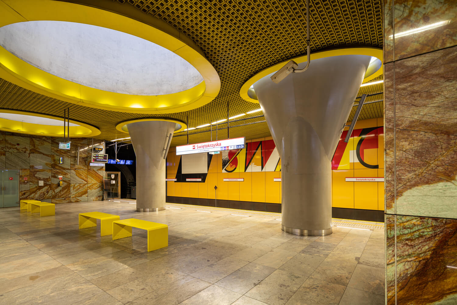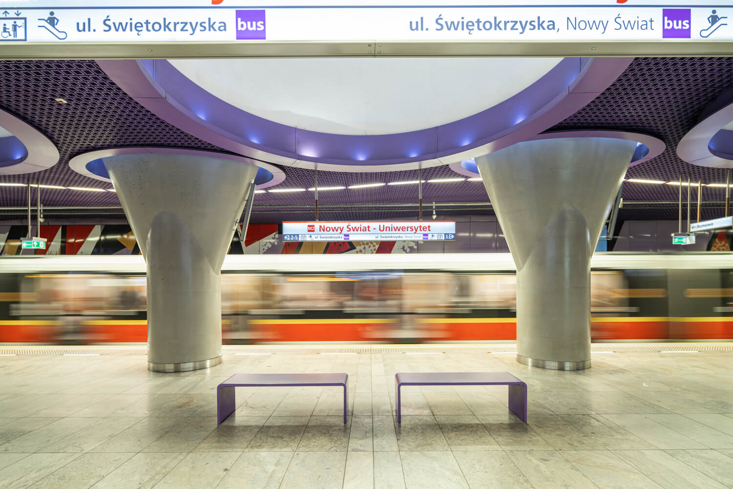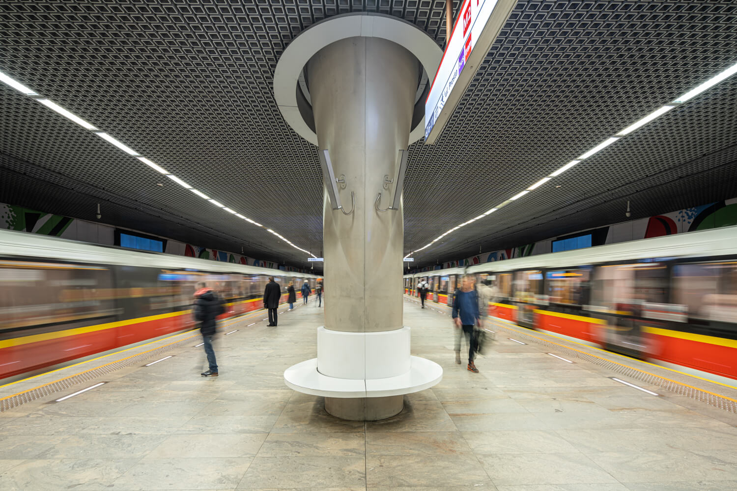Metrostationen und Ästhetik: Ein jeder könnte wohl mehrere Städte aufzählen, in denen sich die Kombination aus beidem auszuschließen scheint. In Warschau aber erlebt man tatsächlich eine einmalige Koexistenz aus öffentlichem Verkehr und Wohlfühlatmosphäre. Mit nur zwei Linien ist das Warschauer Metronetz, selbst für Besucher der Stadt, sehr leicht verständlich und dank Optik und Farbgebung bewegt man sich gern in den Stationen.
