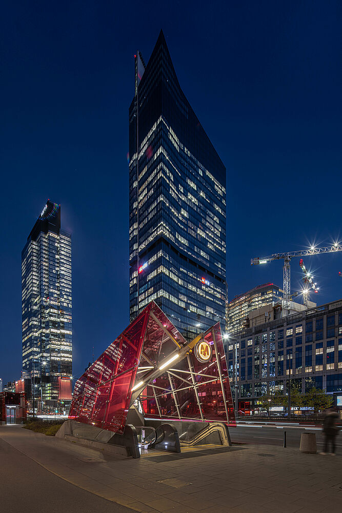 Das im Jahr 2021 fertiggestellte Gebäude ist mit einer Höhe von 195 Metern das sechsthöchste Gebäude Polens. 94.000 m² Fläche verteilt auf 50 Etagen bieten Raum für verschiedene Nutzungen und Funktionen. In den oberirdischen Stockwerken sind Büroflächen, die die Hauptnutzung darstellen und die größte Fläche ausmachen, Einkaufsbereiche und die gesamte Betriebstechnik untergebracht. Zudem integrierte man eine zweigeschossige Skybar in 165 Metern Höhe. Unterirdisch wird Platz für über 400 Autos und 500 Fahrräder zur Verfügung gestellt. Perfekt ergänzt wird dieses Angebot durch die eingangs erwähnte öffentliche Verkehrsinfrastruktur.